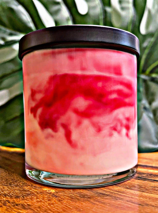 Sweet Bubble Gum Marbled Candle Premium Wax Wooden Wick 9 oz Jar