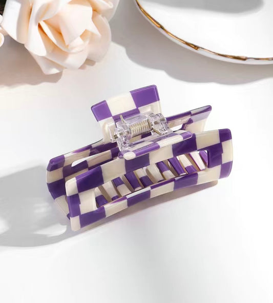 Purple and White Checkered Hair Clip