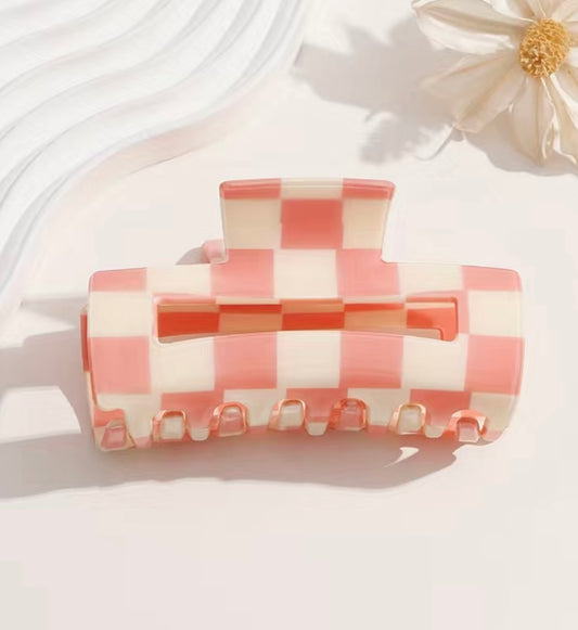 Pink and White Checkered Hair Clip