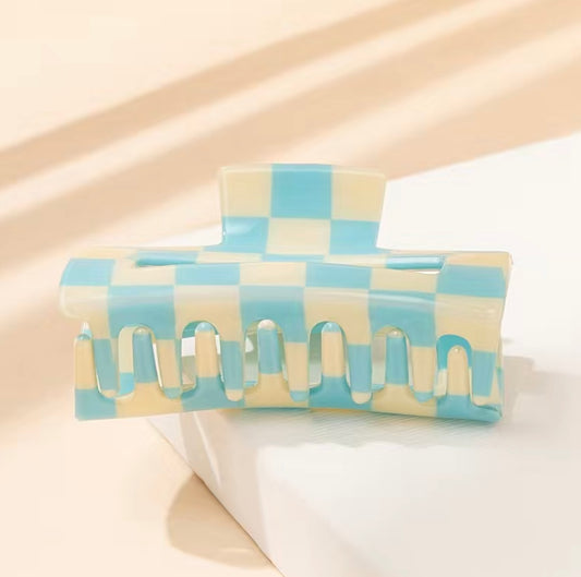 Light Blue and White Checkered Hair Clip