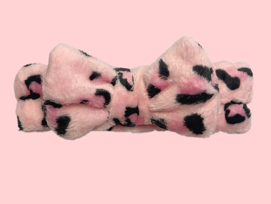 Pink Leopard Bow Elastic Hair Band