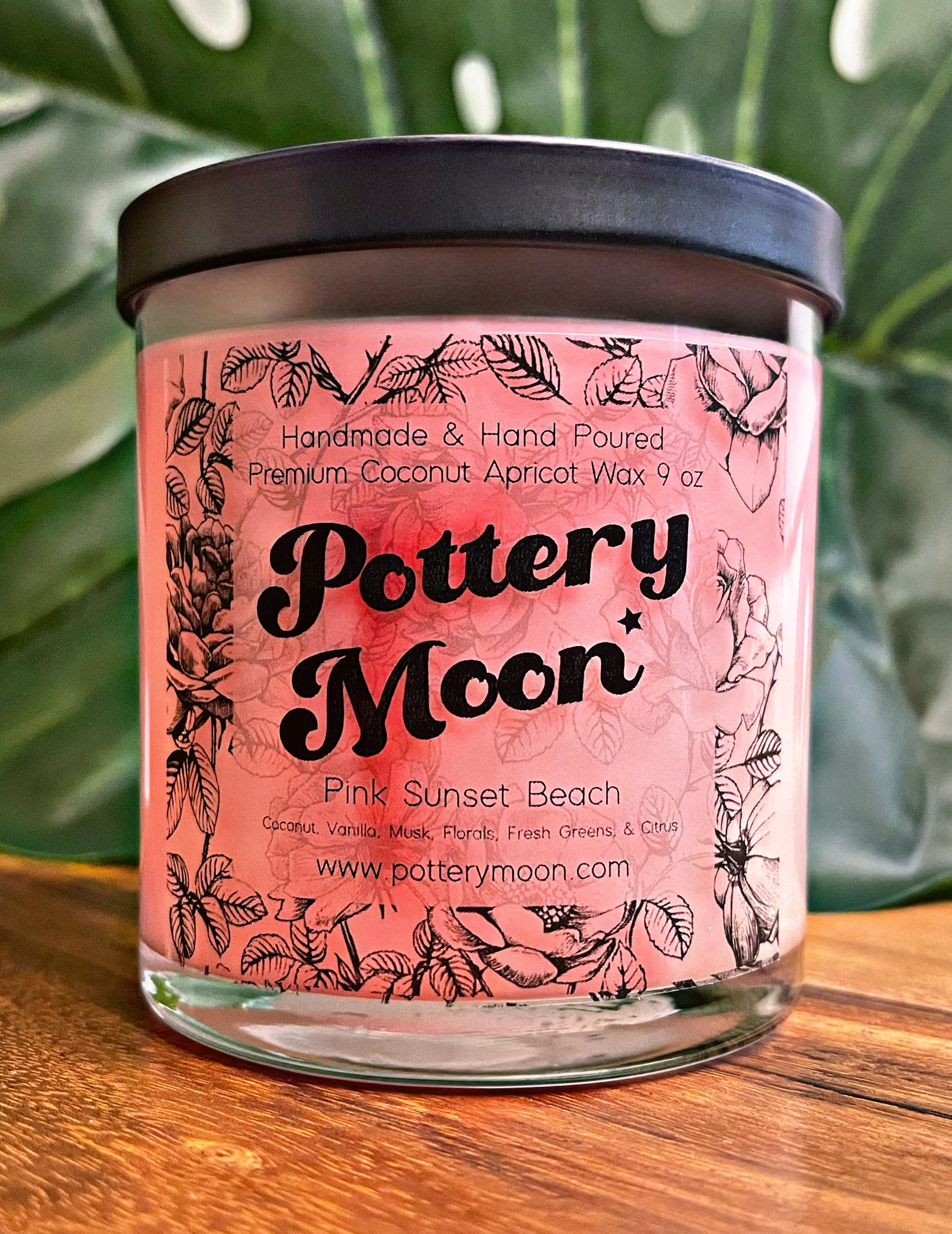Pink Sunset Beach Marbled Candle Premium Wax Wooden Wick 9 oz Jar