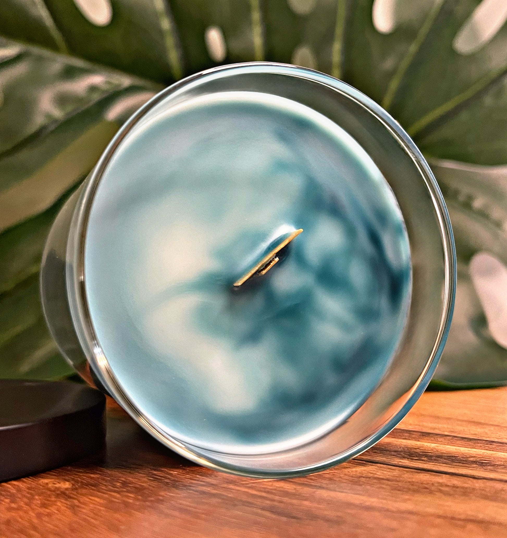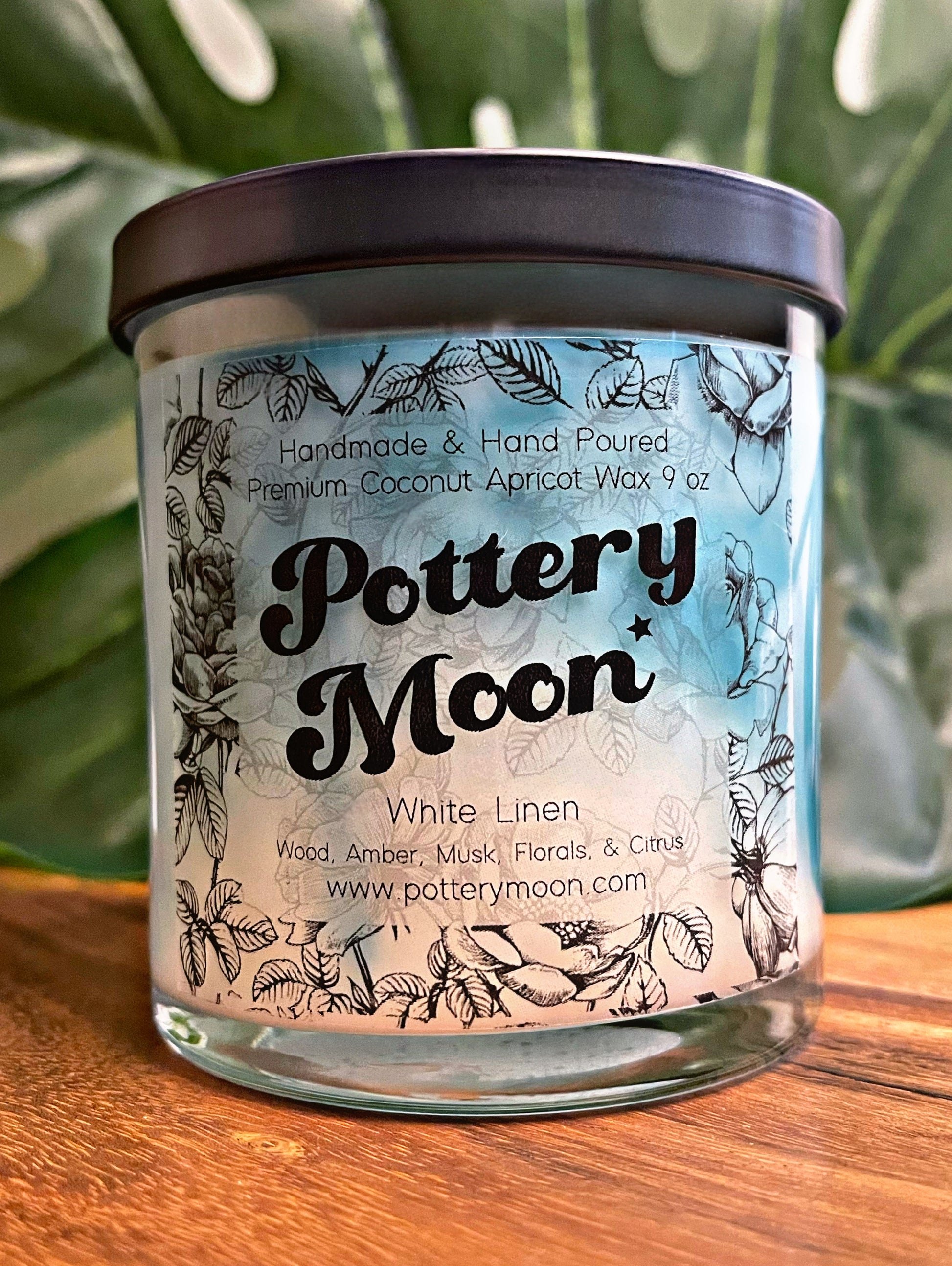 White Linen Marbled Candle Premium Wax Wooden Wick 9 oz Jar